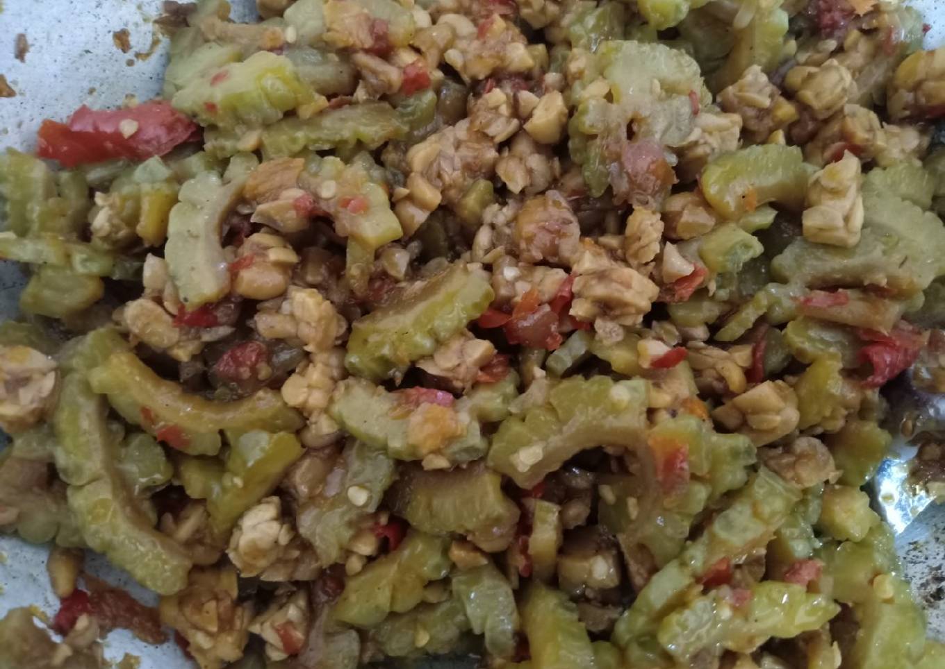 - Masukkan pare yg sudah d rebus. Aduk sampai bumbu meresap dan air menyusut. Angkat dan sajikan
