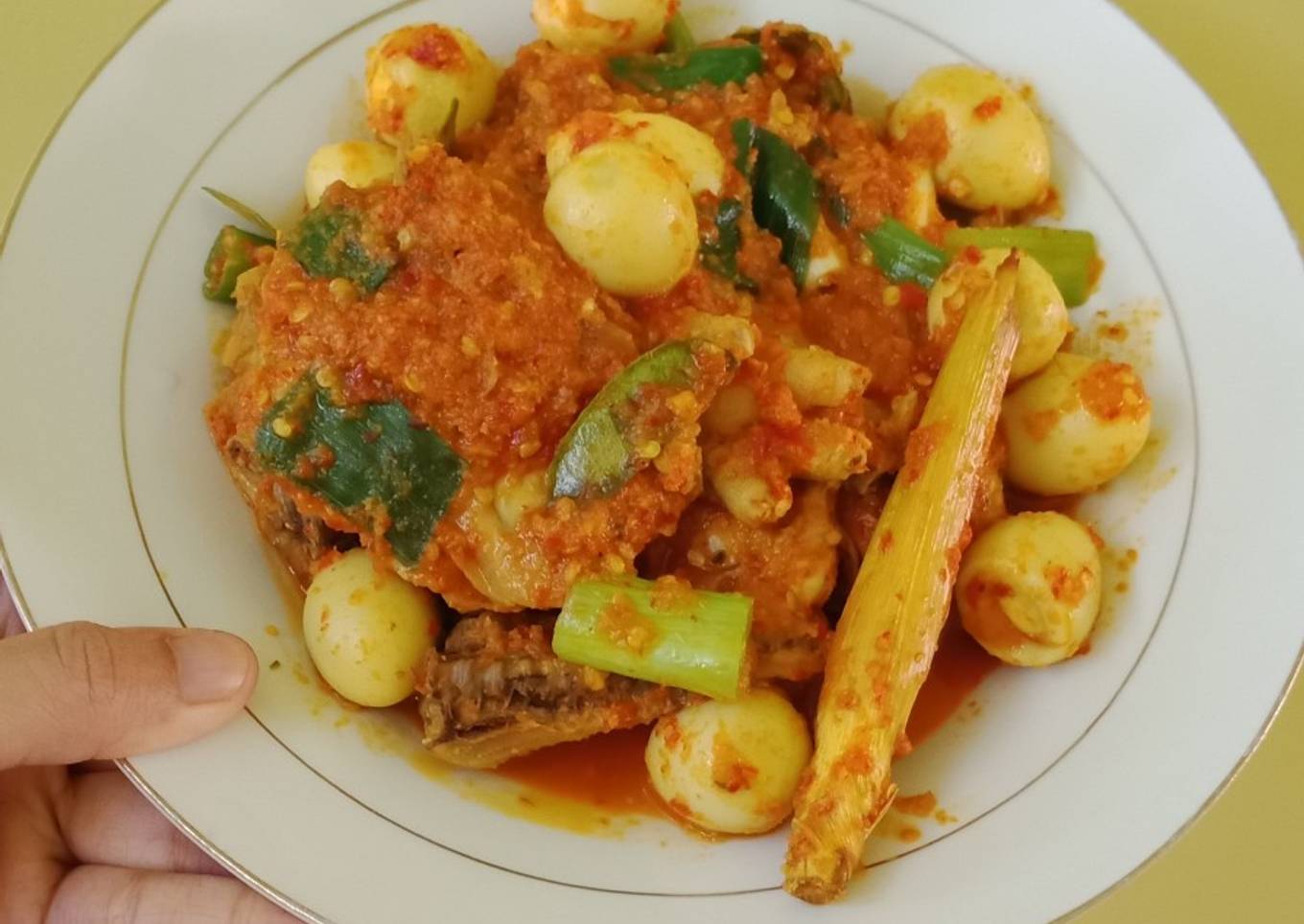 - Kuah sudah mengental masukan telur puyuh aduk sampai rata, lalu terakhir masukan daun bawang. ayam siap di sajikan