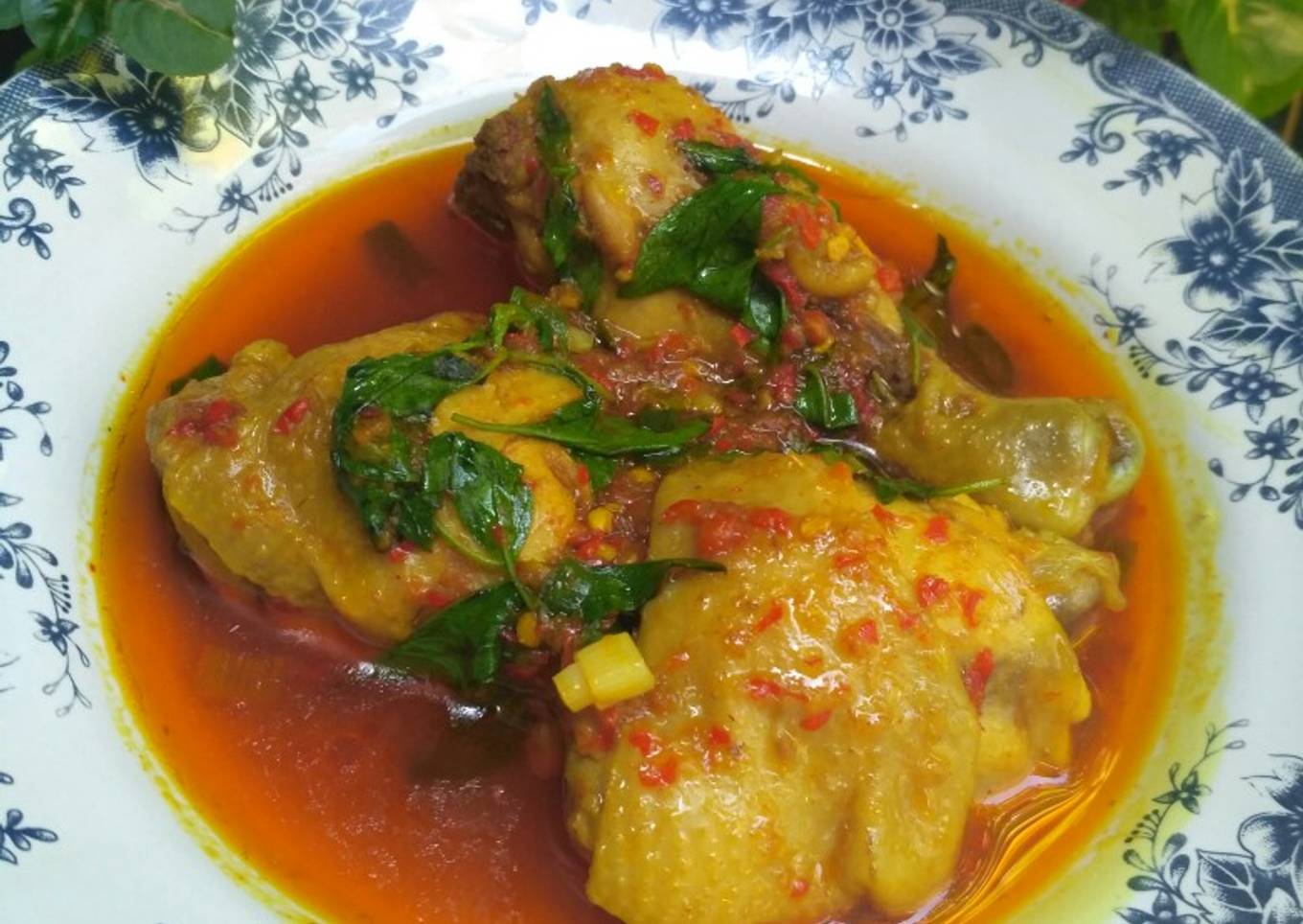 - Jika kuah sudah menyusut, sesaat sebelum diangkat beri potongan daun bawang & daun kemangi.