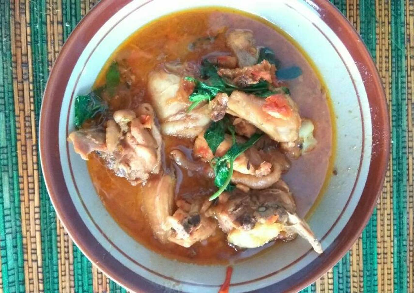- Setelah dirasa pas rasanya dan cukup empuk ayamnya, masukan daun kemangi. Tunggu 1 menit.
