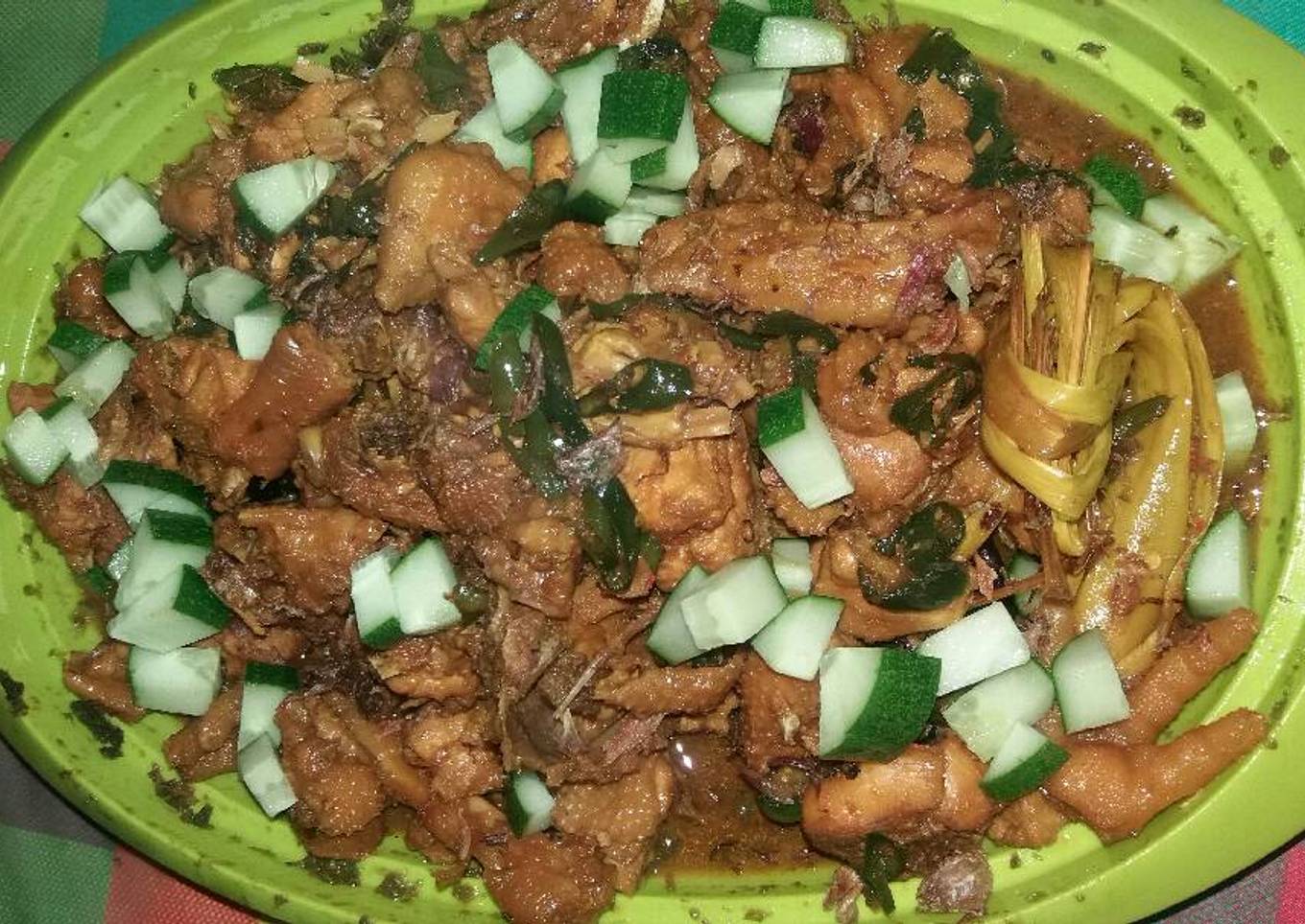- Nah masukan ayam tambhkn air lgi bun" llu masukn lgi daun salam sama laos,jgn lupa di keprek dlu y bun.