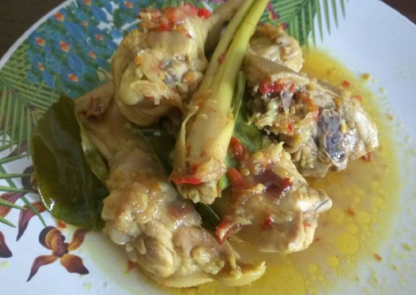 - Panaskan minyak goreng, tumis bumbu halus dan bahan lain, kemudian masukkan ayam tunggu hingga ayam lunak masukkan penyedap jika perlu tunggu 2-3menit dan matikan api.