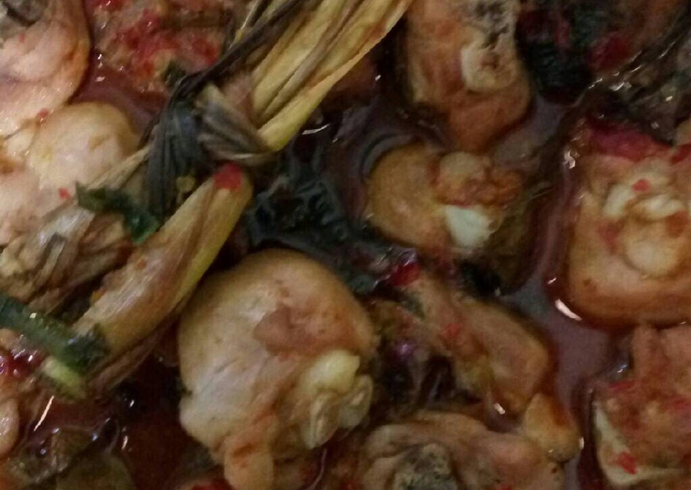 - Tumis bumbu halus hingga harum, kemudian masukkan ayam yang telah di goreng setengaj matang.