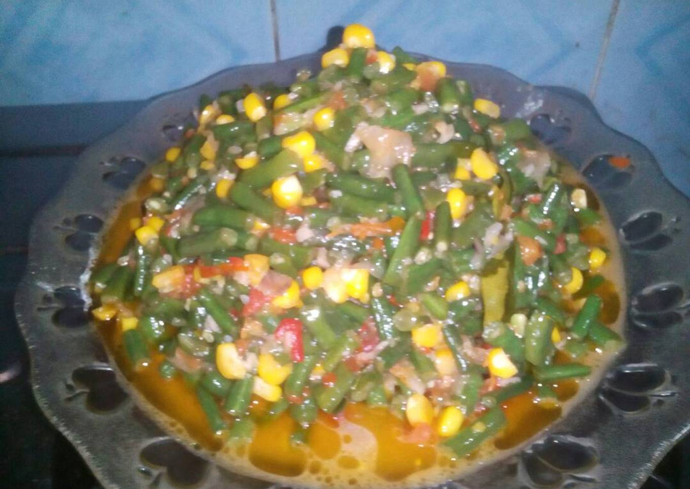 - Masukkan jagung manis tunggu hingga sedikit layu lalu masukkan kacang panjang. Tambahkan lada secukupnya. Tambah sedikit air. Jangan masak terlalu lama agar rasa kres kres renyah dari kacang panjang tdk hilang (bagi yg tdk suka bs dimasak hingga matang) matikan api.hidangkan dengan nasi putih hangat yummmmiiii 😍😍