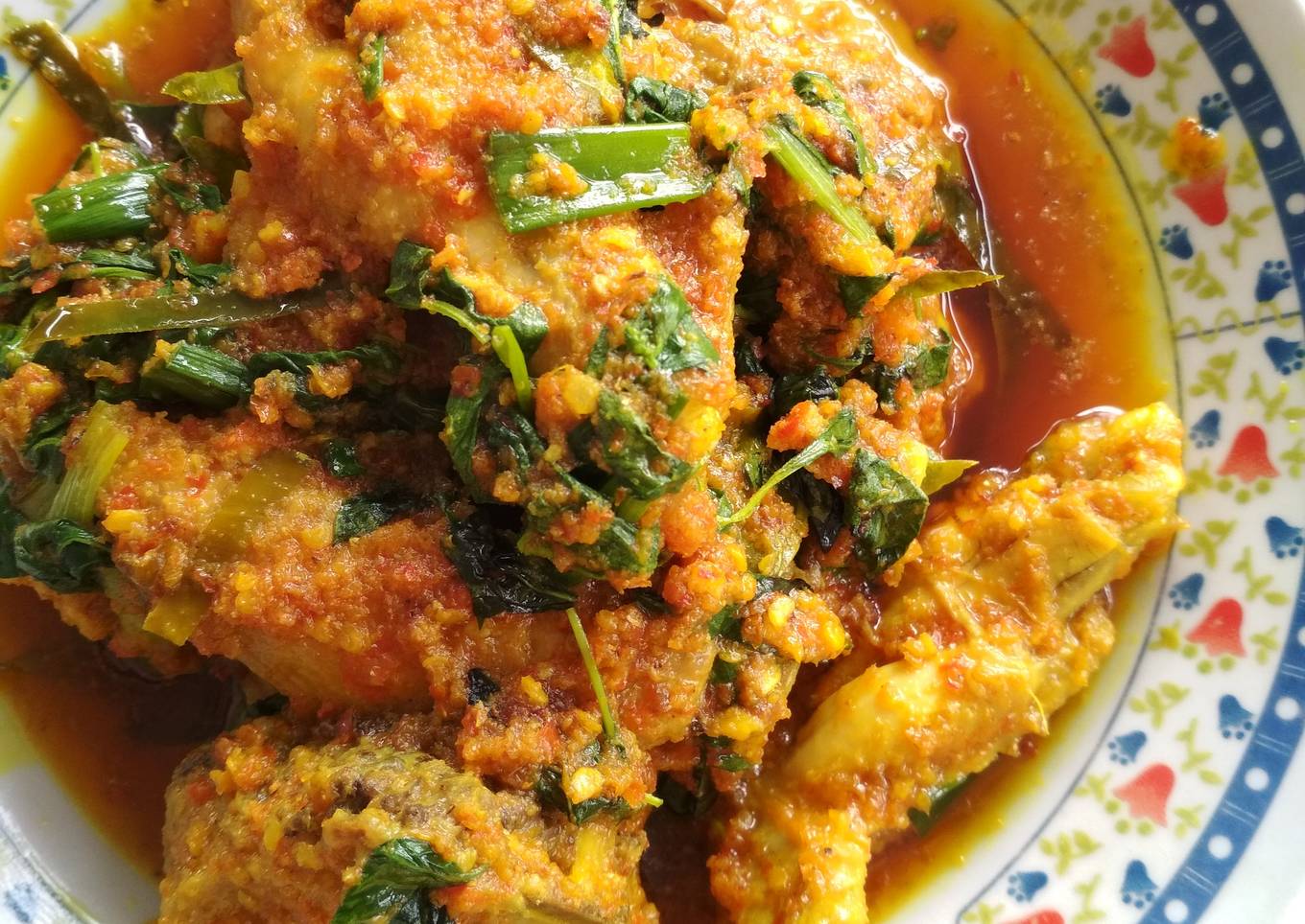 - Jika air sudah mulai menyusut masukan daun bawang dan daun kemari... Biarkan sampai air sampai benar-benar menyusut. Koreksi rasa. Sajikan