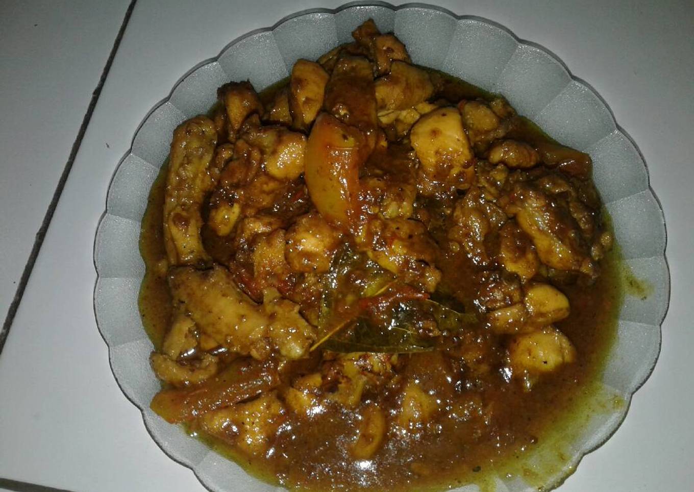 - Masukan ayam yg sudah di goreng. Tutup hingga air berkurang dan ayam meresap