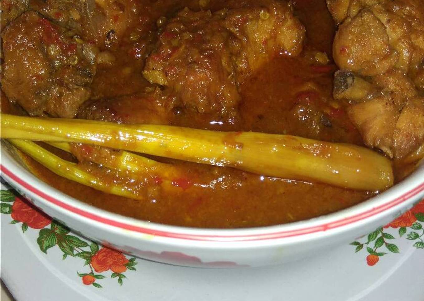 - Haluskan semua bumbu diatas lalu tumis sampai harum terus masukan ayam diaduk lalu kasih air tambahkan daun sereh,laos,daun salam,gula,kecap,penyedap rasa dan biarkan sampai ayam empuk dan bumbu meresap