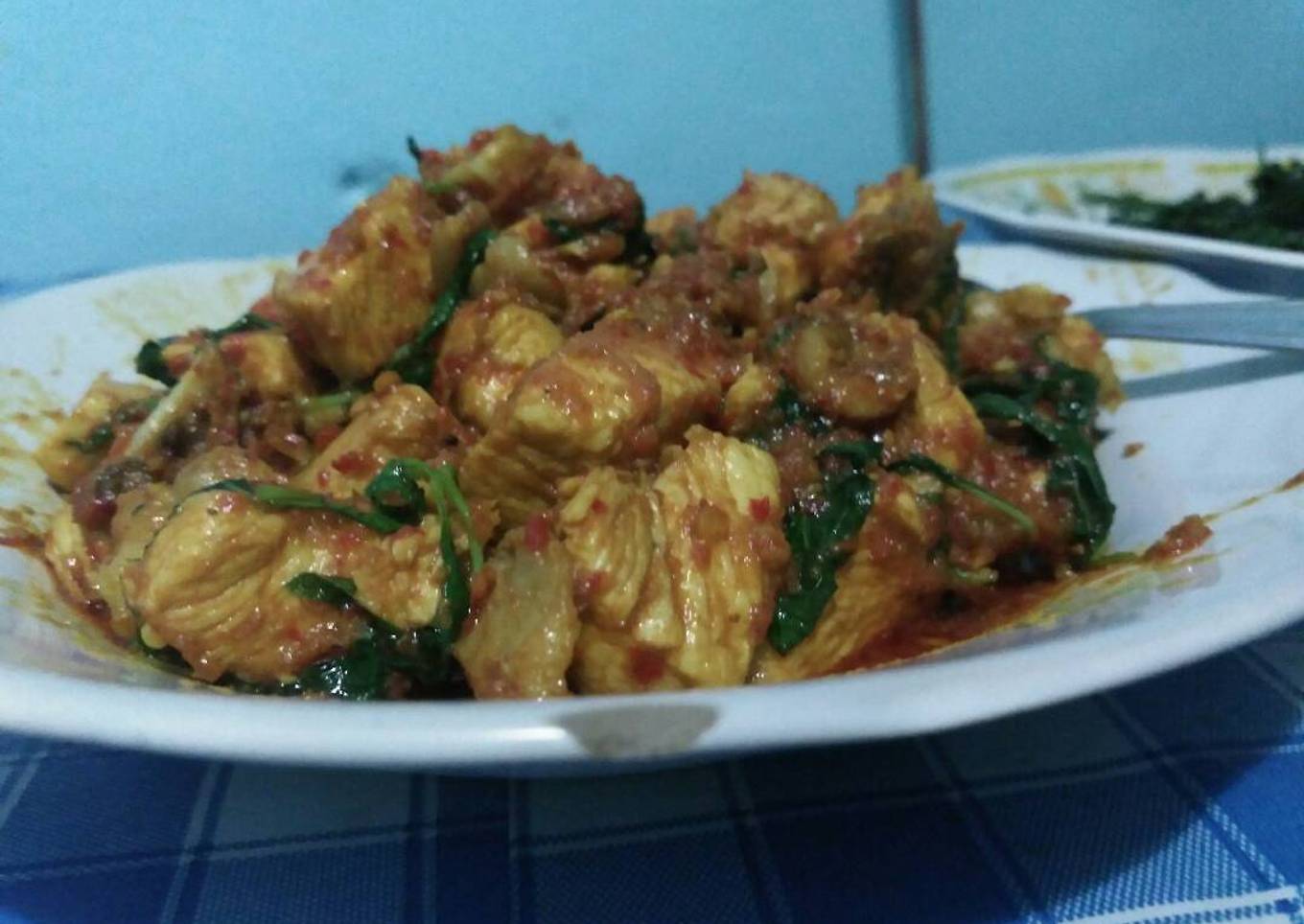 - Bila sudah harum masukan ayam aduk aduk masukkan garam, penyedap dan daun jeruk purut aduk aduk dan masukan air tunggu sampai kira2 sudah matang, sebelum diangkat masukkan daun kemangi, angkat.