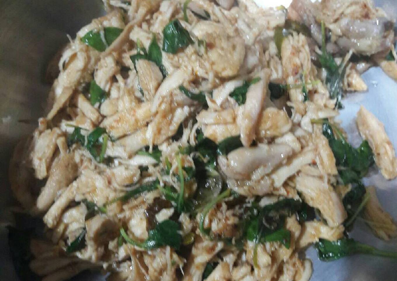 - Selanjutnya masukkan suwiran ayam. Aduk aduk terus hingga bumbu meresap, koreksi rasa.