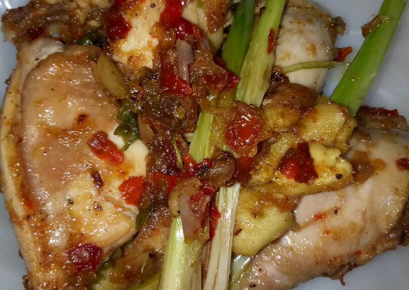 - Tumis Bumbu Halus, Serai Dan Jahe Hingga Harum Lalu Tambahkan Sedikit Air, Masukkan Ayam Yg Sudah Digoreng Tadi Lalu Campurkan Dgn Bumbu Tumis Sampai Tercampur Rata. Masak Hingga Air Menyusut.