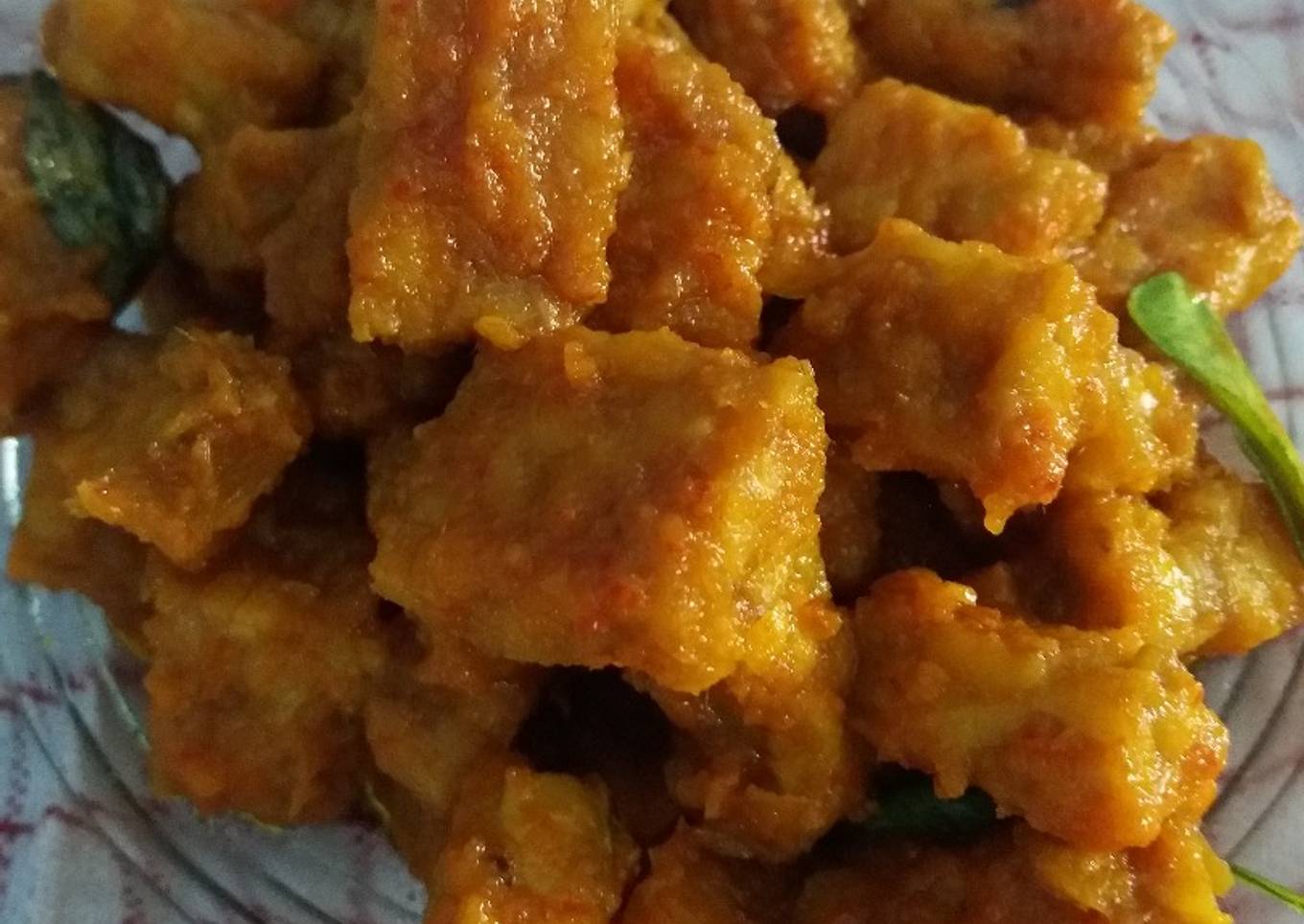 - Potong tempe kotak-kotak lalu goreng setengah matang. Sisihkan.